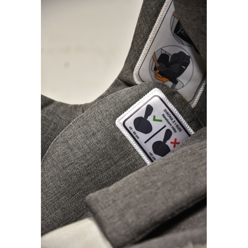 SIRONA Z i-Size to model przeznaczony dla dzieci od narodzin do około 4. roku życia. Montaż fotelika jest możliwy poprzez zaczepy Isofix po dokupieniu dedykowanej bazy. Fakt spełnienia przez fotelik rygorystycznej normy i-Size potwierdza wysoki poziom bezpieczeństwa, jaki gwarantuje ten model. Zagłówek jest regulowany w 12 stopniach, przez co można go dopasować do dziecka zgodnie z jego wzrostem dla zapewnienia najwyższego bezpieczeństwa.
