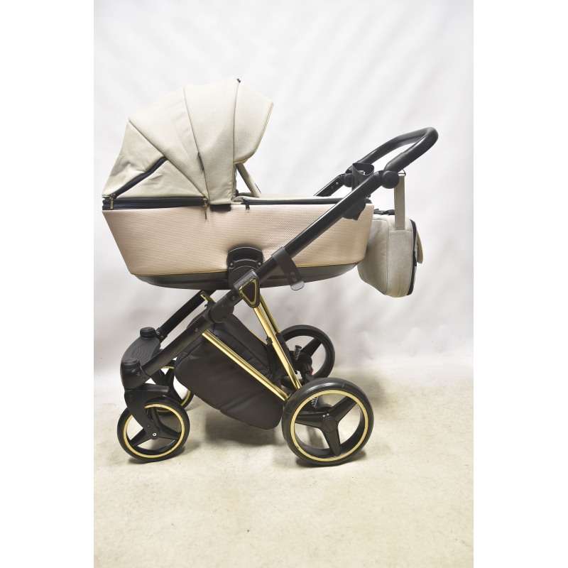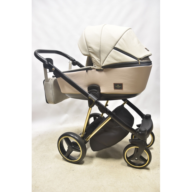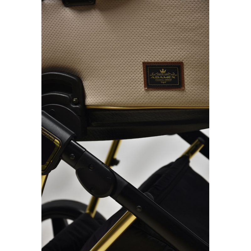 Model Adamex Cristiano 2w1 ma lekki, składany stelaż wyposażony w odporne na przebicie, żelowe koła. Są one demontowane dla łatwiejszego transportowania wózka samochodem albo przechowywania go w domu. Oba siedziska w wózku Adamex Cristiano 2w1 mają regulowane oparcia, a spacerówka również podnóżek. W gondoli znajduje się materac kokosowy, który można prać. Przestronna budka chroni przed silnym słońcem. W siedzisku spacerowym zamontowano pięciopunktowe pasy bezpieczeństwa. Wózek Adamex Cristiano ma dołączoną torbę w atrakcyjnej kolorystyce dopasowanej do wózka, zawierającą podręczny przewijak.