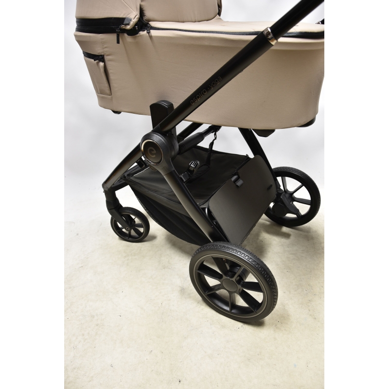 Wyjątkowy i bezpieczny system wypinania gondoli jednym ruchem oraz dodatkowe, specjalne stopery, które gwarantują stabilność i zapobiegają zabrudzeniom spodu gondoli w wyniku stawiania jej na podłożu.
