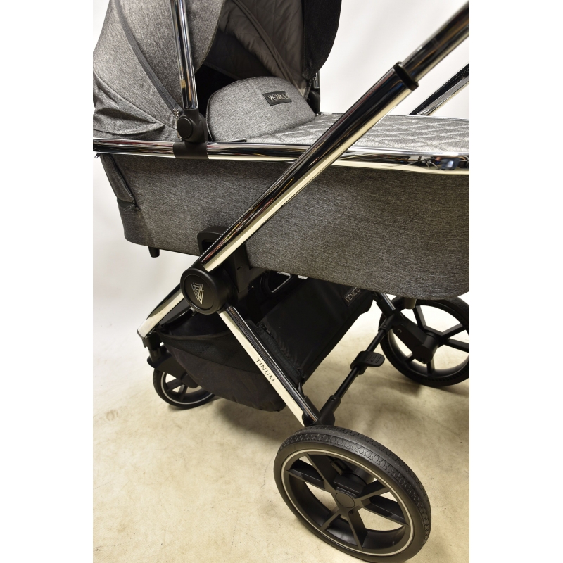 Warto podkreślić, że stelaż Tinum 2.0 wykonano z niezwykle lekkiego, wytrzymałego i odpornego na uszkodzenia aluminium. Za sprawą tego rozwiązania, sama rama wózka od Venicci waży zaledwie 5,5 kg, a cała konstrukcja – wraz z wpiętą gondolą lub siedziskiem spacerowym – 12 kg. To sprawia, że jest ona nie tylko wyjątkowo łatwa w prowadzeniu, ale także wygodna do przenoszenia po złożeniu.