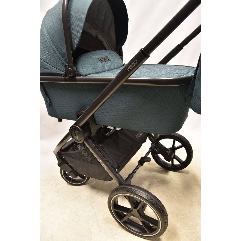 Warto podkreślić, że stelaż Tinum 2.0 wykonano z niezwykle lekkiego, wytrzymałego i odpornego na uszkodzenia aluminium. Za sprawą tego rozwiązania, sama rama wózka od Venicci waży zaledwie 5,5 kg, a cała konstrukcja – wraz z wpiętą gondolą lub siedziskiem spacerowym – 12 kg. To sprawia, że jest ona nie tylko wyjątkowo łatwa w prowadzeniu, ale także wygodna do przenoszenia po złożeniu.
