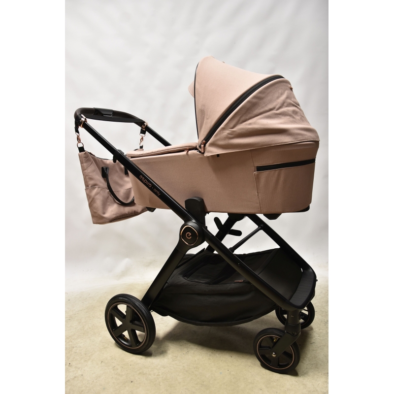 Gondola wózka espiro only waży zaledwie 3,9 kg oraz posiada obszerne wnętrze. Bardzo łatwo montuje się ją bezpośrednio na stelażu, bez konieczności użycia dodatkowych adapterów. Jest to niezwykle wygodne dla rodziców, którzy często przenoszą gondolę. Odpowiednią wentylację i komfort termiczny podczas gorących dni zapewniają duże okno wentylacyjne z siatką znajdujące się z tyłu budki. Podczas chłodniejszych dni gondolę można używać ze specjalnym pokrowcem na zamek i kołnierzem na magnesy. Dużym atutem jest jakościowy materacyk i wypinana wyściółka wykonane z mięciutkiego i przyjaznego dla dziecka materiału. Gondola posiada dodatkowy daszek oraz wbudowaną moskitierę - latem nie ma konieczności używania dodatkowych akcesoriów chroniących przed światłem, czy owadami.