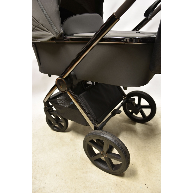 Stan zestawu oceniam na bardzo dobry- Wózek nosi minimalne ślady użytkowania, tj. lekkie ryski na stelażu i kółkach. Wózek w pełni sprawny i zadbany. Posiada bardzo atrakcyjny wygląd i z pewnością doskonale posłuży kolejnemu użytkownikowi.
