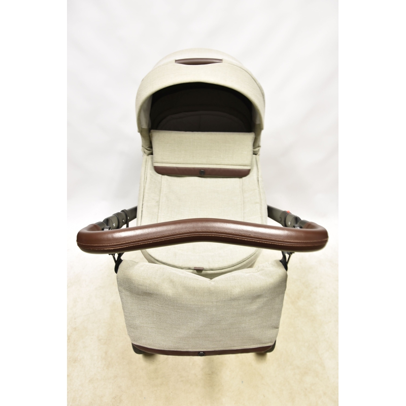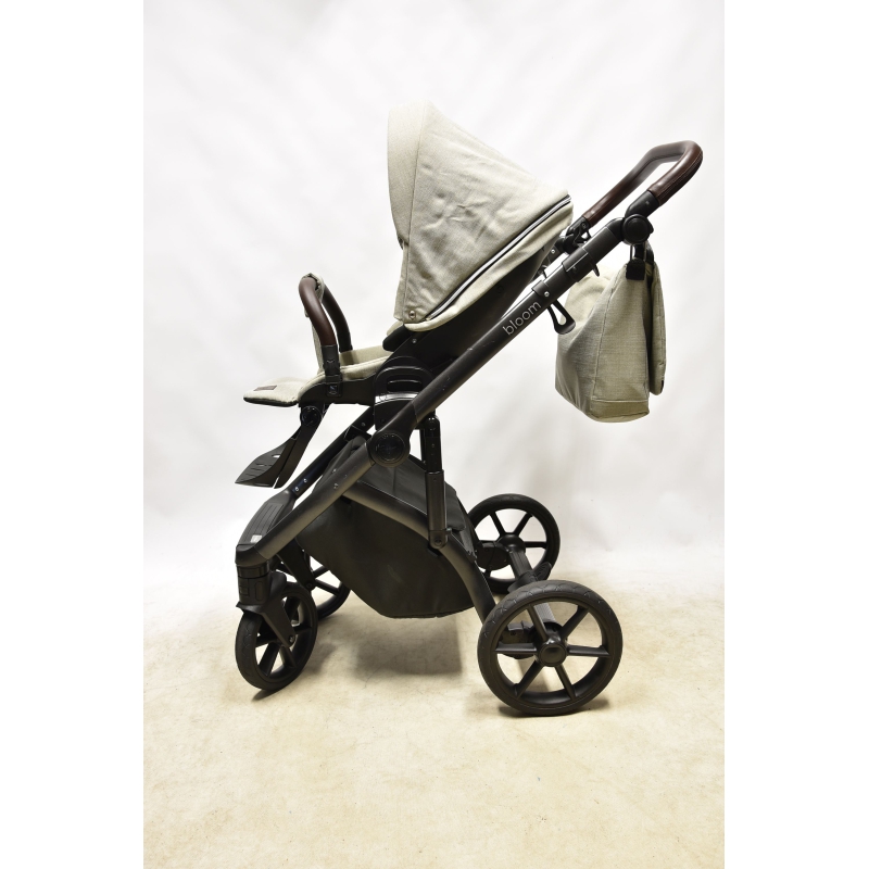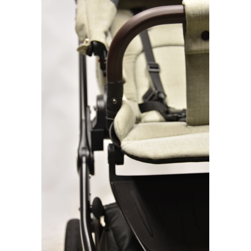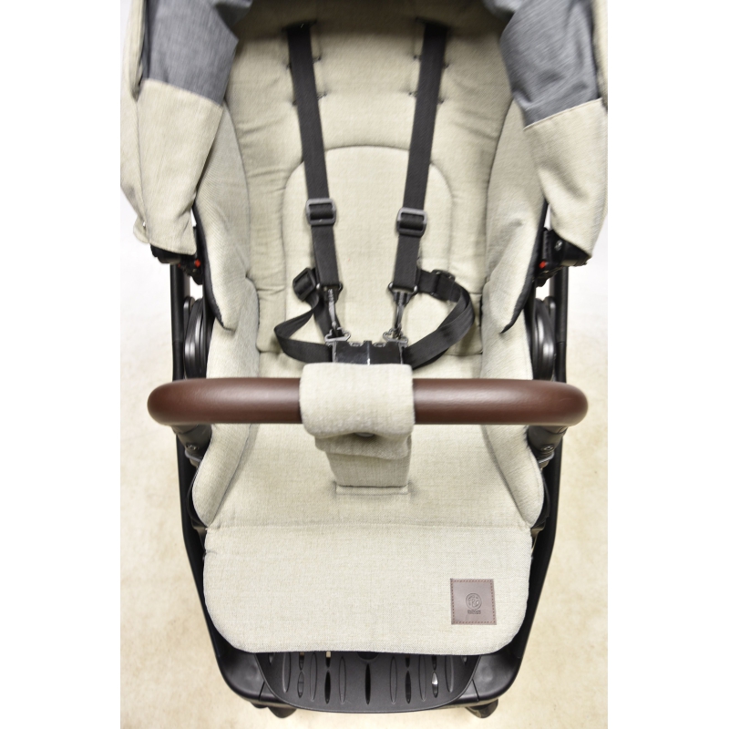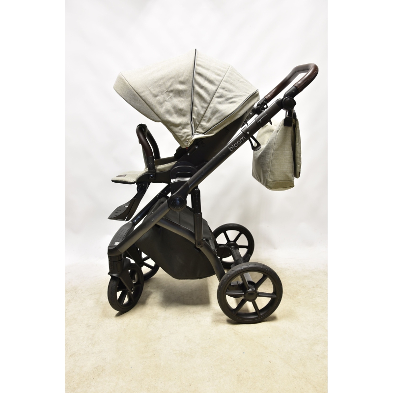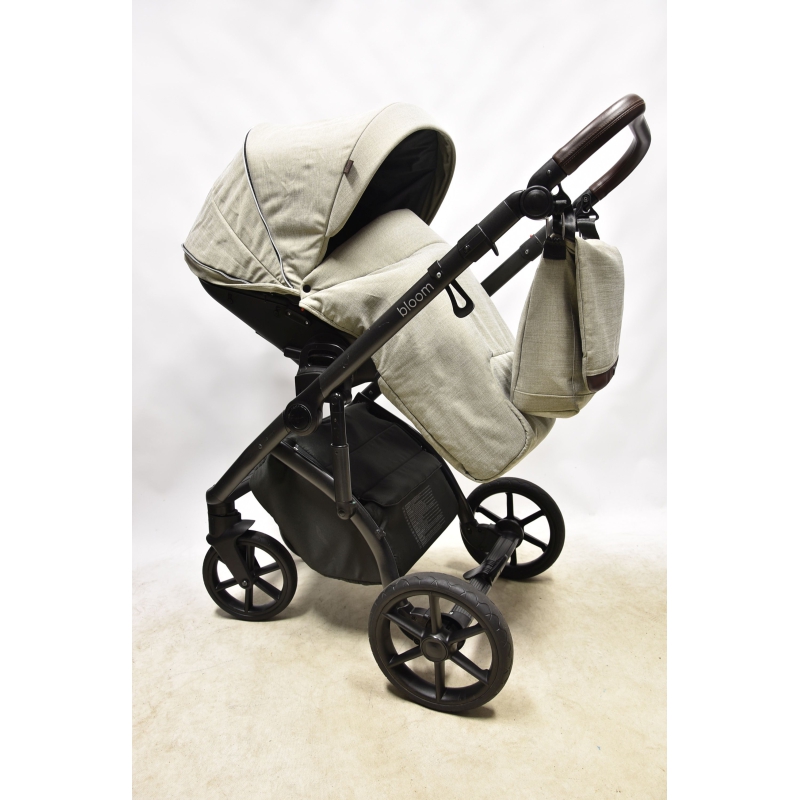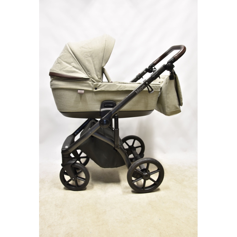 Bloom posiada regulowane oparcie do pozycji leżącej w wersji spacerowej, regulowany podnóżek odpinaną barierkę, obszytą eko-skórą.