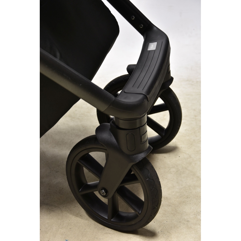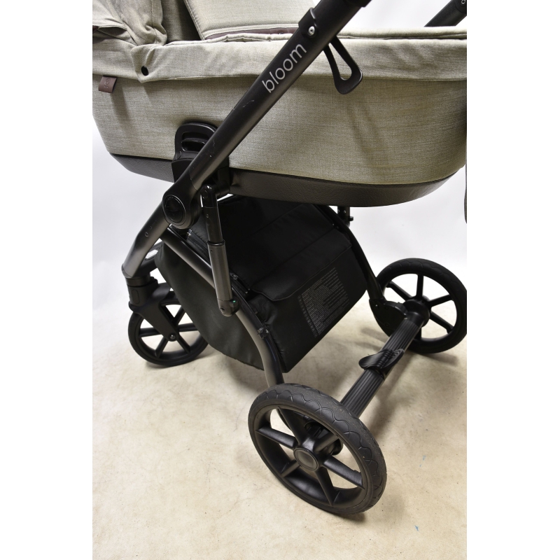 Wózek Bloom został wyposażony w stelaż z doskonałą amortyzacją. system SAS - dodatkowy amortyzator z możliwością blokady, który wpływa na komfort prowadzenia wózka. Przednie koła posiadają możliwość obrotu z możliwością blokady do jazdy na wprost. Wózek został wyposażony także w system stabilizacji kół obrotowych. Koła bezobsługowe/ bezdętkowe zapewniają płynne prowadzenie bez ryzyka przebicia.