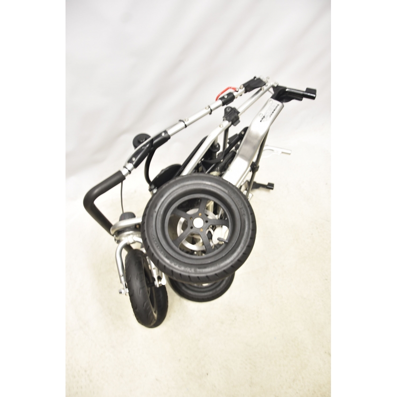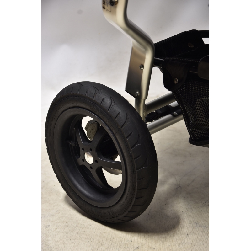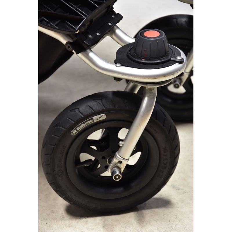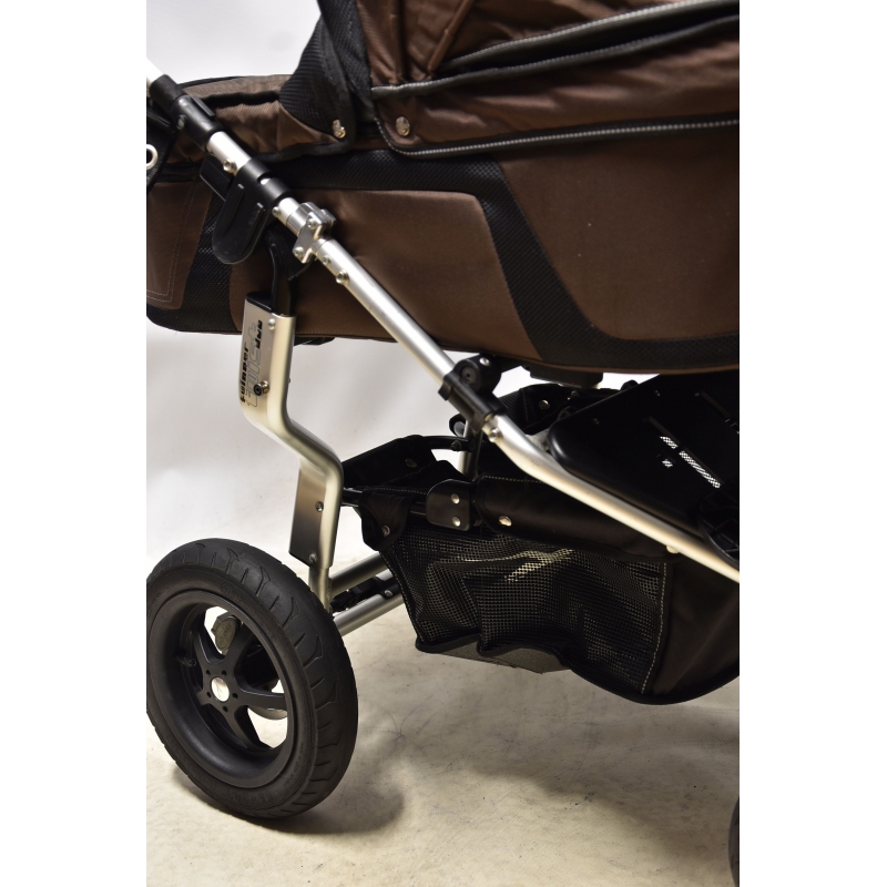 Podobnie jak wózki z linii Joggster posiada amortyzowane zawieszenie i regulowaną wysokość podnóżka.