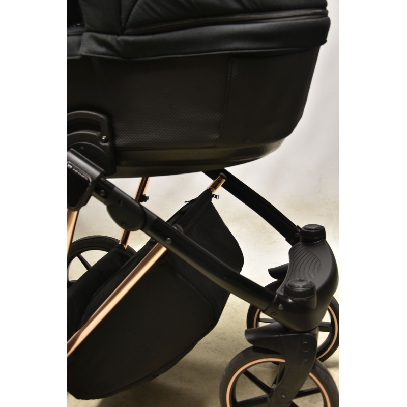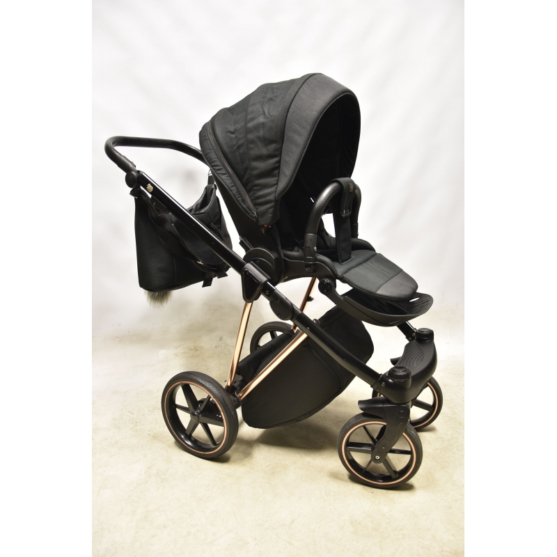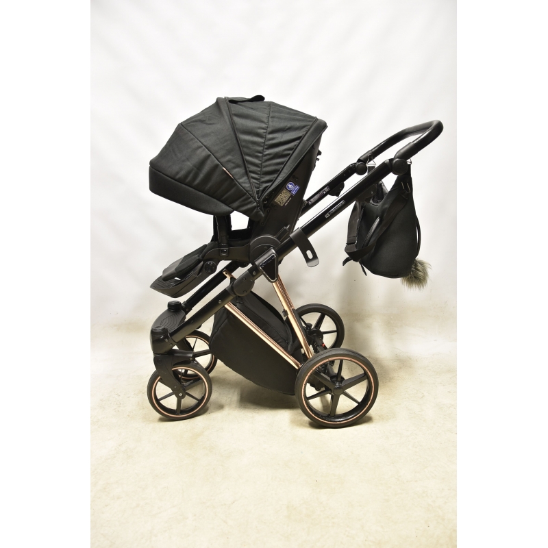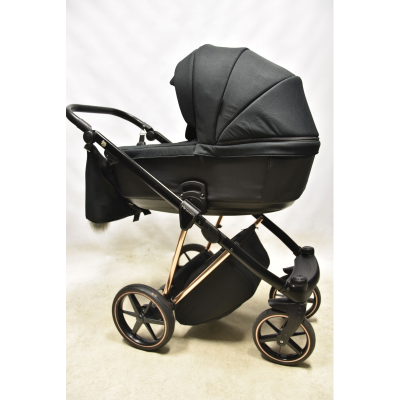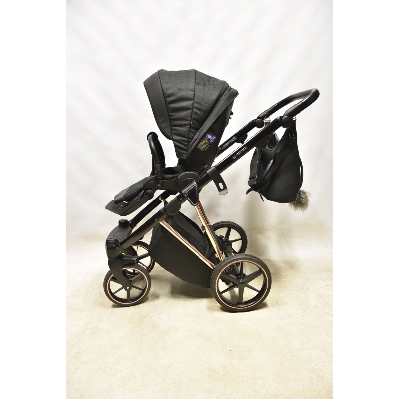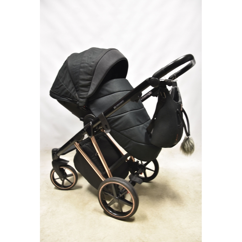 Wybierając model Adamex Belissa otrzymujesz w zestawie stylową torbę z modnym futerkowym pomponem, mocowaniem na stelaż wózka oraz paskiem na ramię. Zajrzyj do środka! Zaskoczy cię jej zawartość. Zawiera dodatkowo folię przeciwdeszczową, moskitierę, rękawiczki oraz matę do przewijania. Oprócz tego producent oferuje pokrowce na nóżki do gondoli i spacerówki oraz uchwyt na kubek. Prawda, że na bogato?