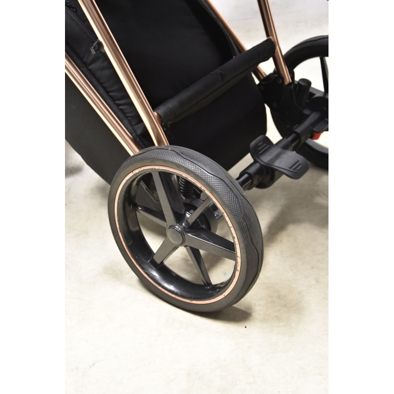 Doskonały spacer w każdych warunkach zapewni wam miękka amortyzacja. Możesz regulować twardość zawieszenia adekwatnie do rodzaju nawierzchni, dzięki mechanizmowi przy tylnej osi. Co więcej, masz tutaj bezobsługowe i bezdętkowe koła, które są bardzo wytrzymałe i zawsze o tej samej twardości.