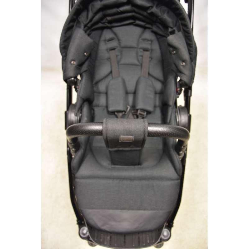 Barierka bezpieczeństwa ze stylowym obiciem jest odpinana i odchylana na bok. W ten sposób dziecko z łatwością wejdzie do wózka i zejdzie z niego.