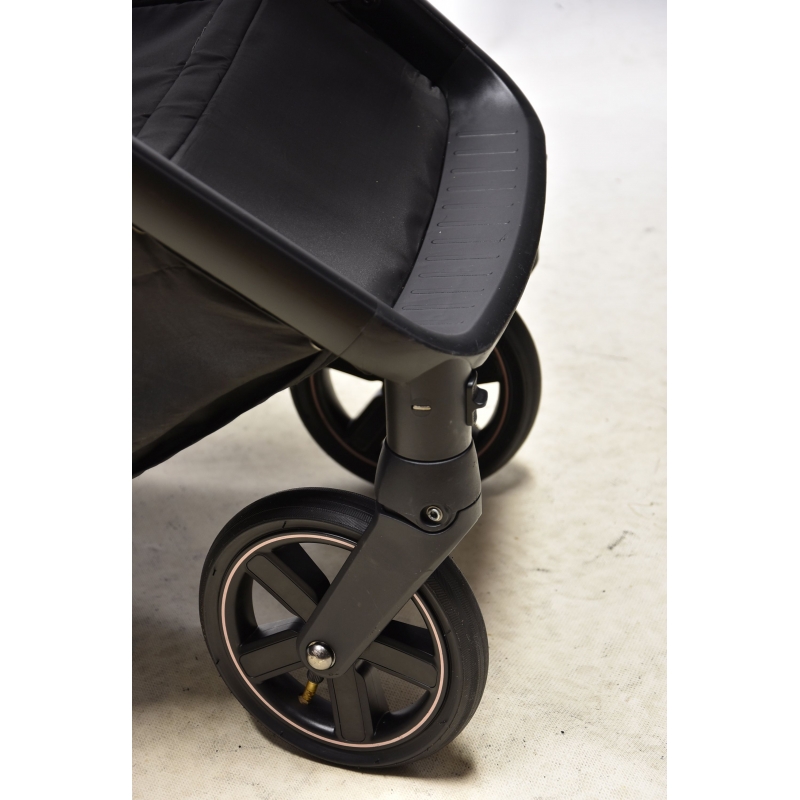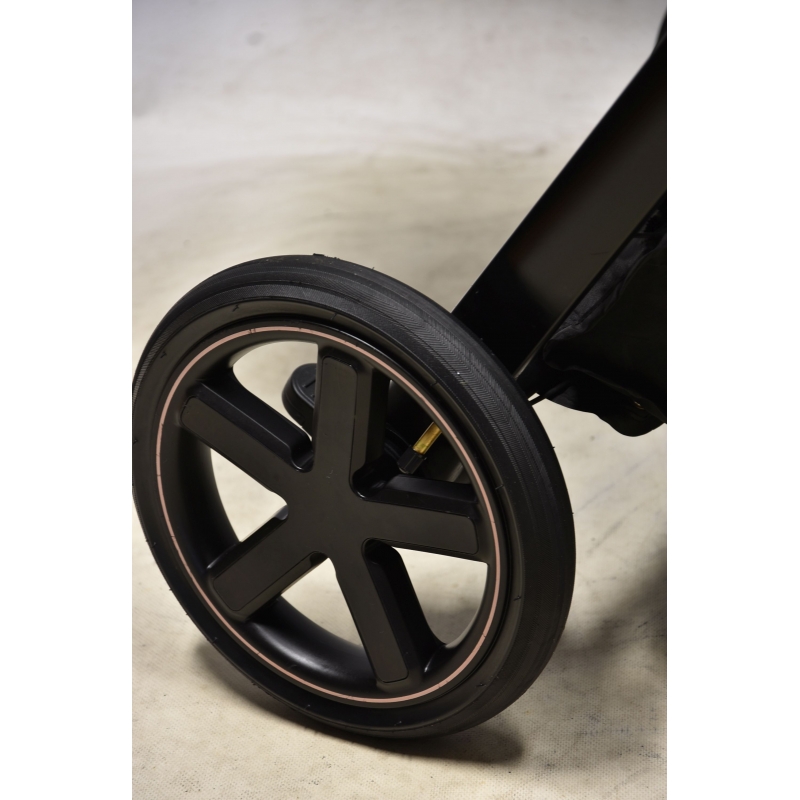 Koła wózka są pompowane, na zewnątrz znajduje się gumowa opona z bieżnikiem, który gwarantuje odpowiednią przyczepność. Wszystkie koła posiadają pełną amortyzację. Z tyłu znajduje się ergonomiczny hamulec.