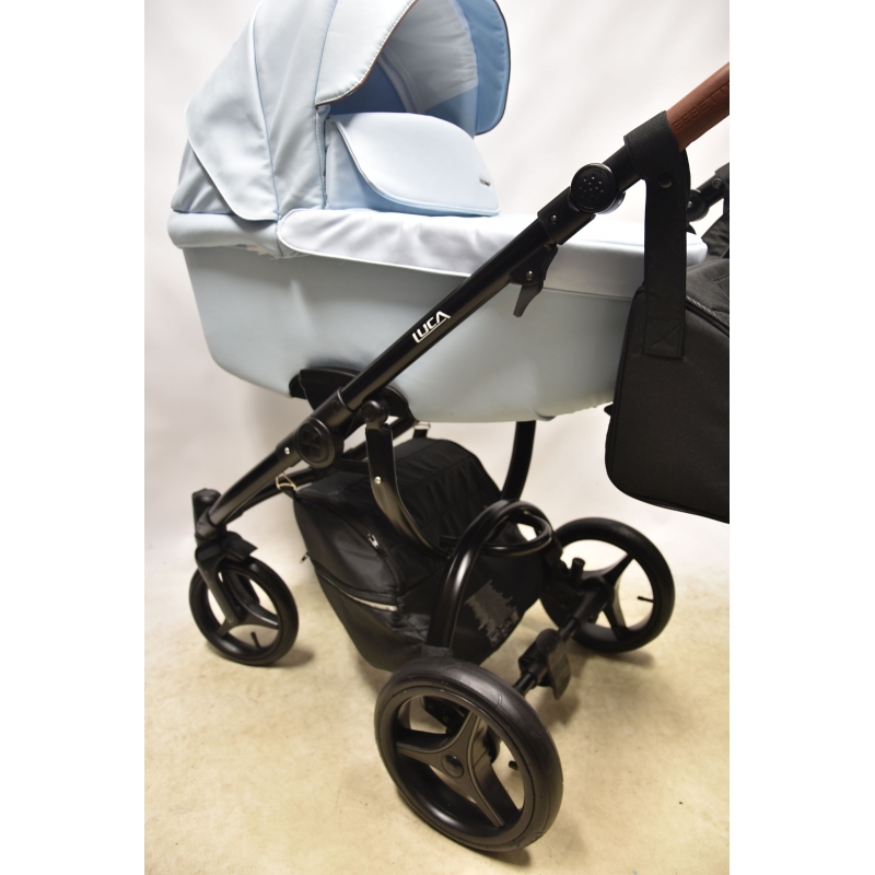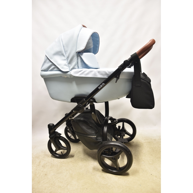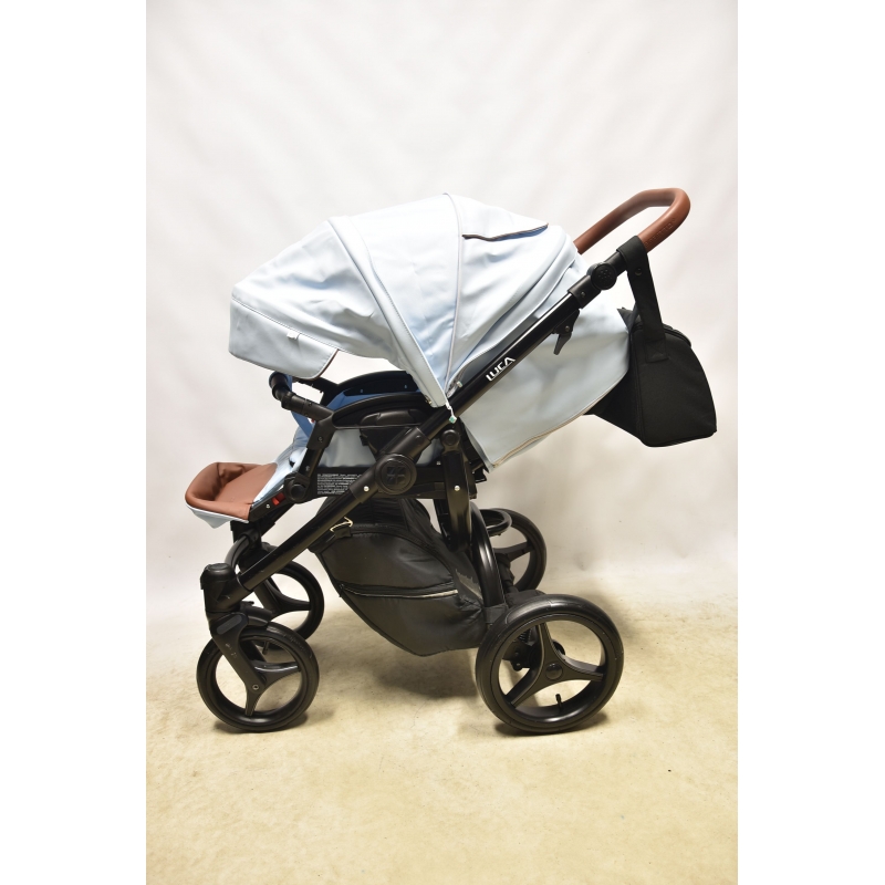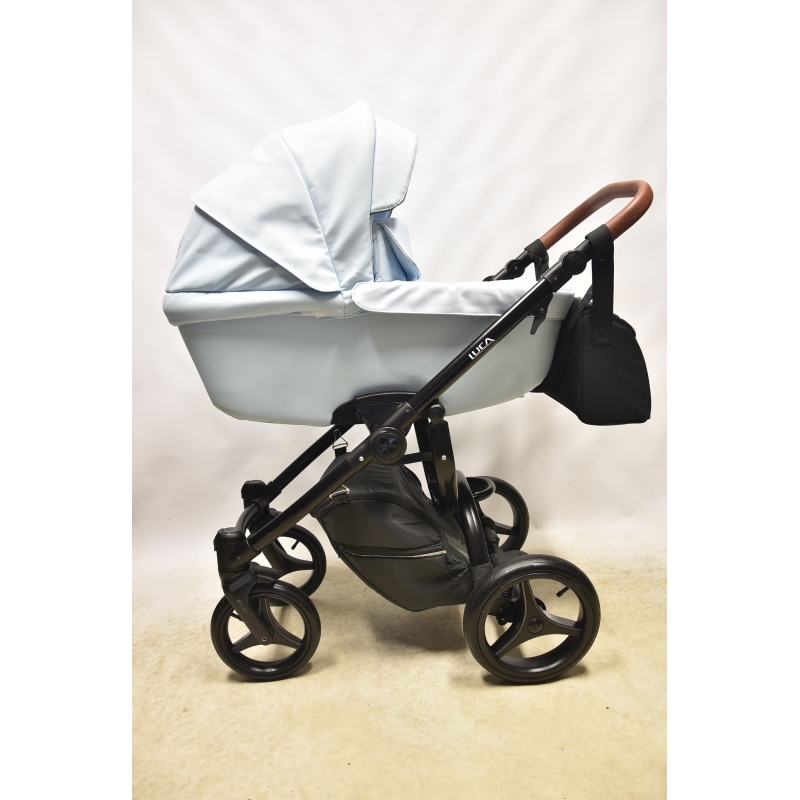 Wózek Bebetto Luca PRO 2w1 to nowy design znanego i lubianego wózka Luca. Gondola wózka oraz budka spacerówki wykonane są z eko-skóry, która dodaje wózkowi elegancji. Natomiast siedzisko spacerówki dla komfortu dziecka nie jest pokryte eko-skórą, ale miękką tapicerką w kolorze budki i gondoli.