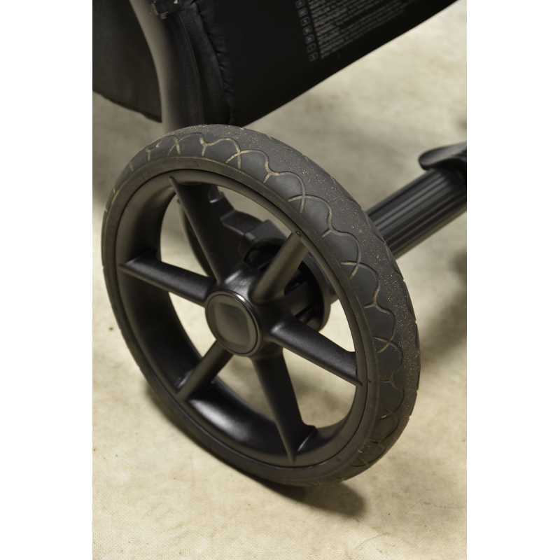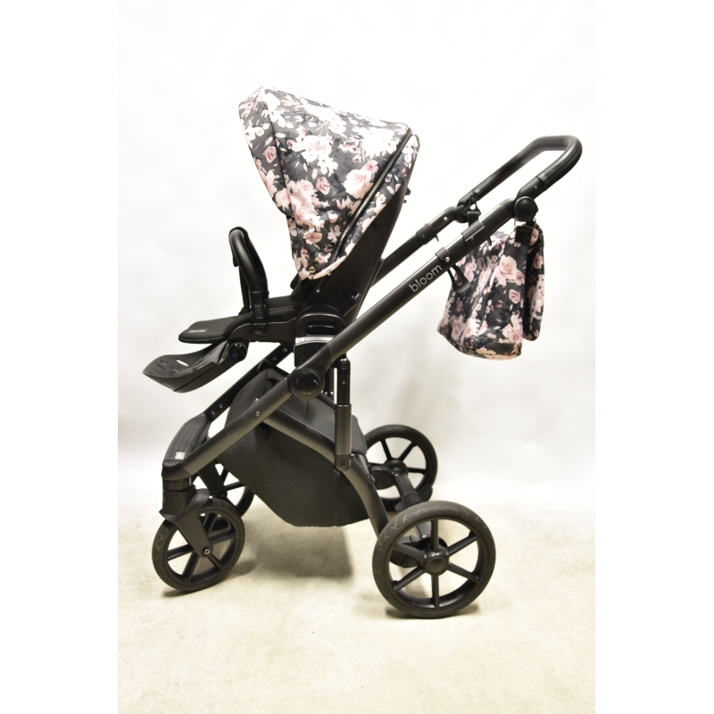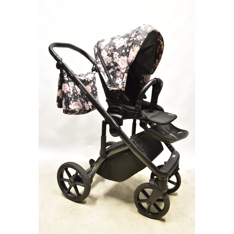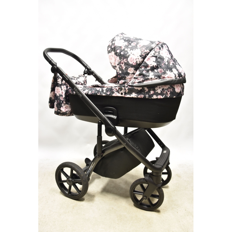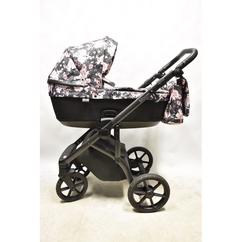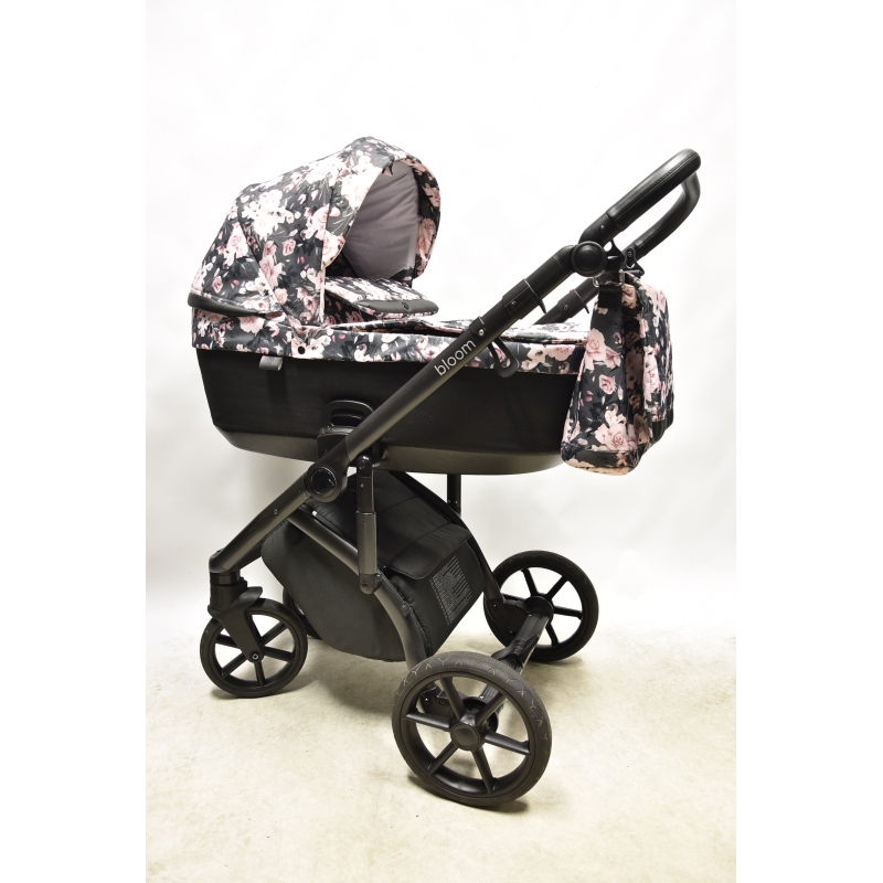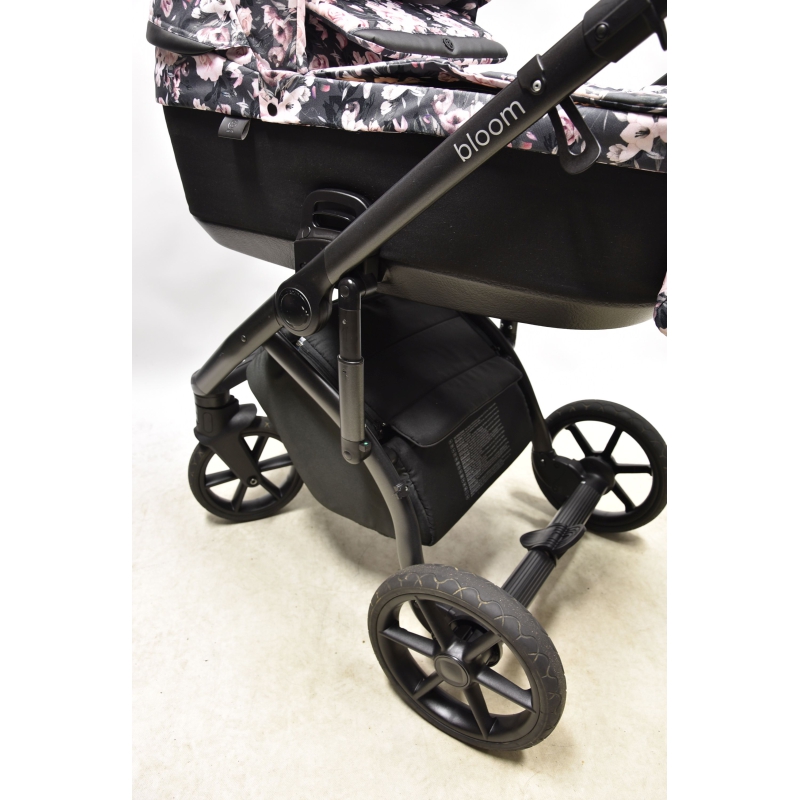 Wózek Bloom został wyposażony w stelaż z doskonałą amortyzacją. system SAS - dodatkowy amortyzator z możliwością blokady, który wpływa na komfort prowadzenia wózka. Przednie koła posiadają możliwość obrotu z możliwością blokady do jazdy na wprost. Wózek został wyposażony także w system stabilizacji kół obrotowych. Koła bezobsługowe/ bezdętkowe zapewniają płynne prowadzenie bez ryzyka przebicia.