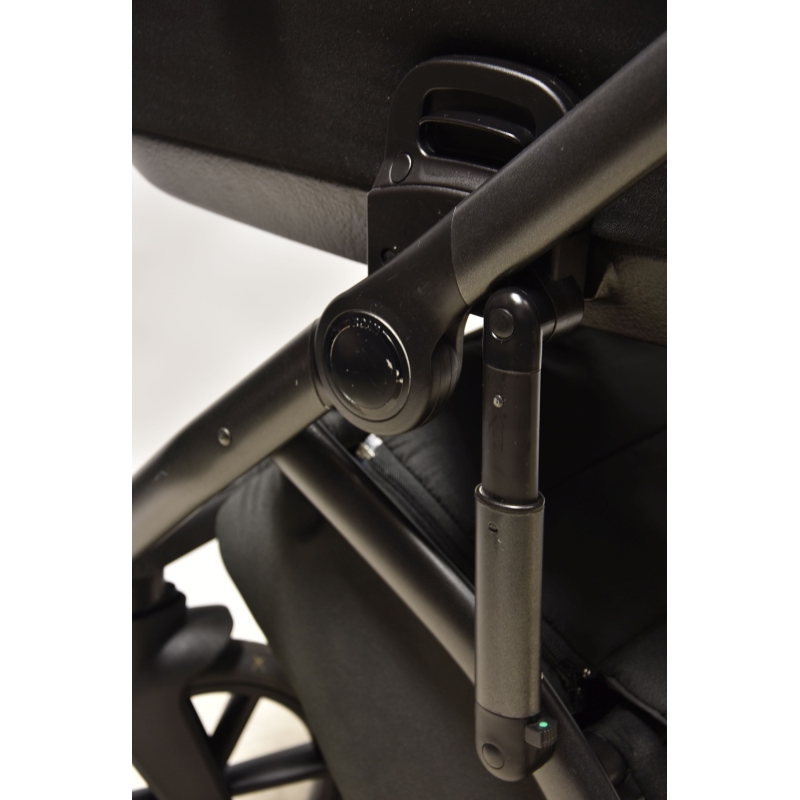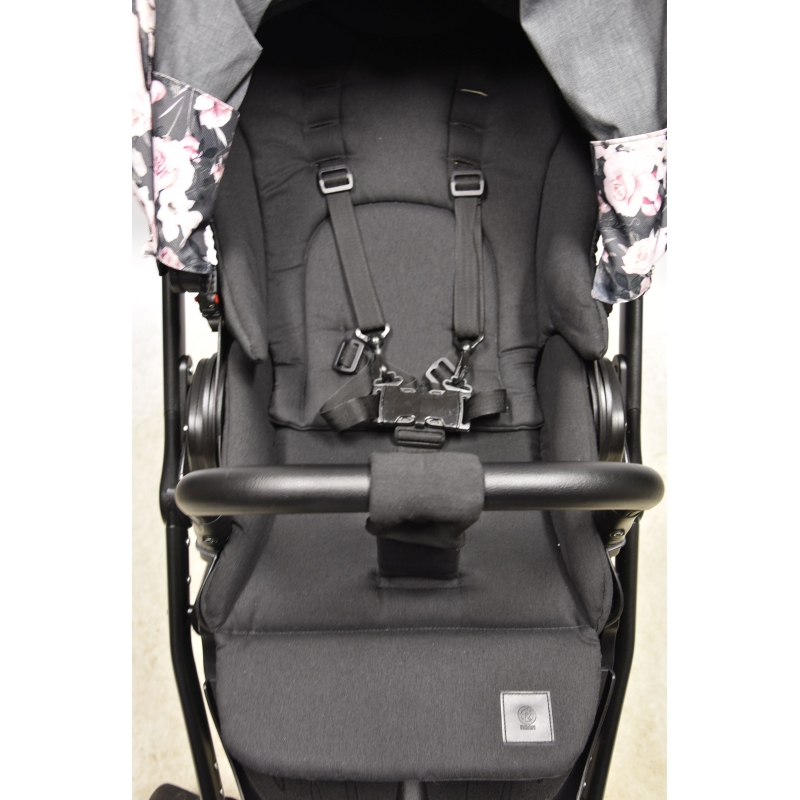 Bloom posiada regulowane oparcie do pozycji leżącej w wersji spacerowej, regulowany podnóżek odpinaną barierkę, obszytą eko-skórą.