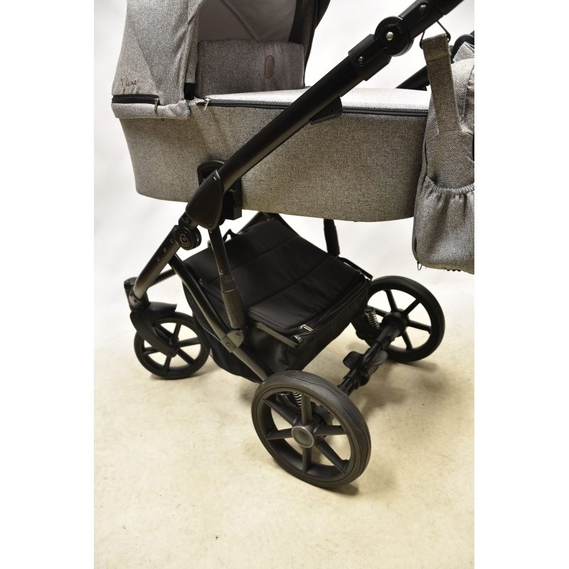 Stan zestawu oceniam na bardzo dobry- Wózek nosi minimalne ślady użytkowania, tj. lekkie ryski na stelażu i kółkach. Wózek w pełni sprawny i zadbany. Posiada bardzo atrakcyjny wygląd i z pewnością doskonale posłuży kolejnemu użytkownikowi.