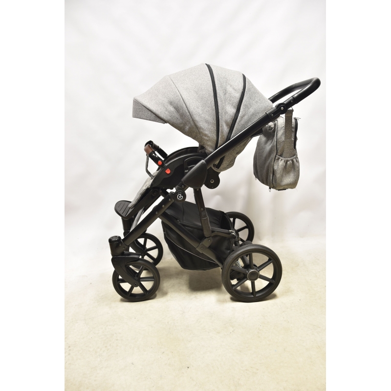 Wózek głęboko-spacerowy Jedo Koda to kompletny i wielofunkcyjny wózek. Oprócz obszerniej i miękko wyściełanej gondoli, Jedo Koda ma w zestawie wygodne siedzisko spacerowe z wyjmowana wkładką. Spacerówka może być umieszczona na stelażu zarówno przodem, jak i tyłem do kierunku jazdy. Dodatkowo można regulować stopień twardości zawieszenia, ponieważ wózek Jedo ma dwustopniowa amortyzację. W zestawie z wózkiem znajduje się okrycie na nóżki do gondoli i spacerówki, folia przeciwdeszczowa do gondoli,moskitiera do gondoli oraz torba pielęgnacyjna z przewijakiem. Torba do wózka Jedo Koda dopasowana jest kolorystycznie. Możliwość wyboru koloru stelaża oraz rodzaju kół sprawia, że wózek nabiera cech indywidualnych.