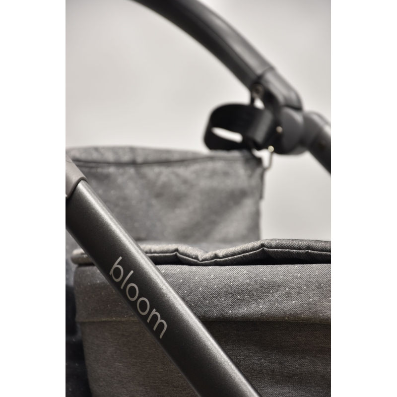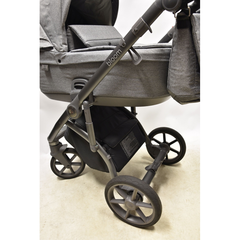 Wózek Bloom został wyposażony w stelaż z doskonałą amortyzacją. system SAS - dodatkowy amortyzator z możliwością blokady, który wpływa na komfort prowadzenia wózka. Przednie koła posiadają możliwość obrotu z możliwością blokady do jazdy na wprost. Wózek został wyposażony także w system stabilizacji kół obrotowych. Koła bezobsługowe/ bezdętkowe zapewniają płynne prowadzenie bez ryzyka przebicia.