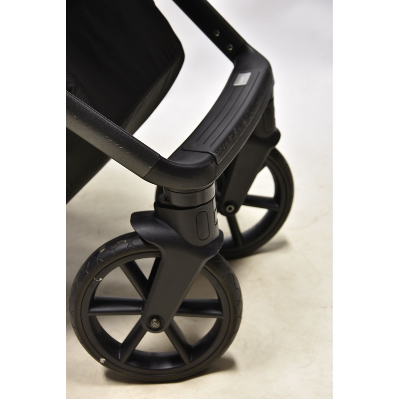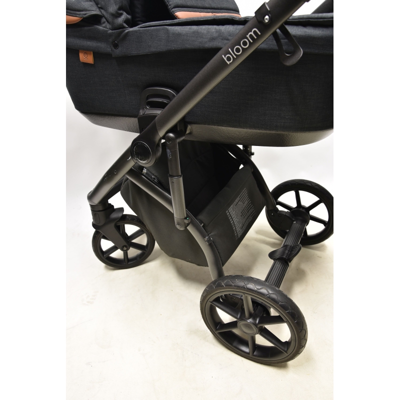 Wózek Bloom został wyposażony w stelaż z doskonałą amortyzacją. system SAS - dodatkowy amortyzator z możliwością blokady, który wpływa na komfort prowadzenia wózka. Przednie koła posiadają możliwość obrotu z możliwością blokady do jazdy na wprost. Wózek został wyposażony także w system stabilizacji kół obrotowych. Koła bezobsługowe/ bezdętkowe zapewniają płynne prowadzenie bez ryzyka przebicia.