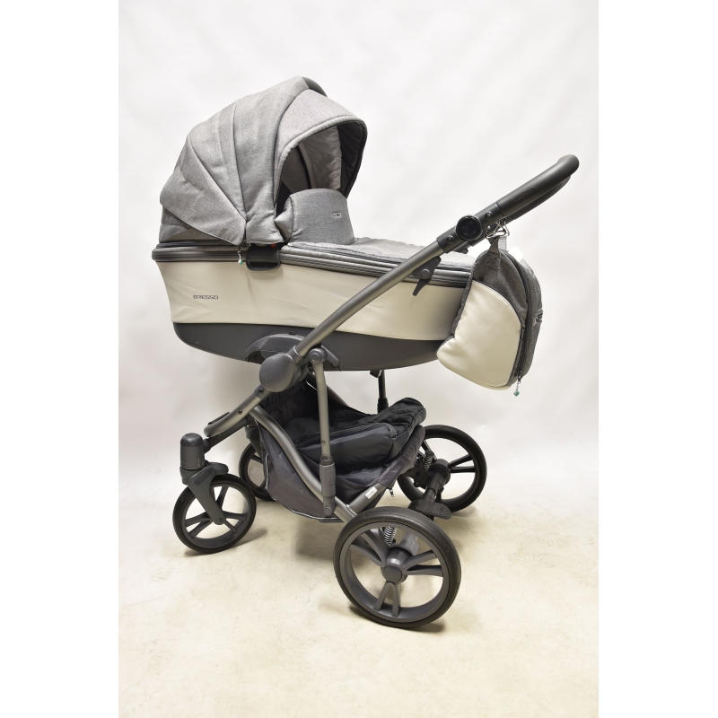 Wózek dziecięcy 2w1 BEBETTO BRESSO + torba to wózek głęboko-spacerowy, który łączy w sobie elegancki wygląd i nowoczesny styl. Nietuzinkowe połączenie tkanin, wykończenia z ekoskóry i ciekawy kształt sprawiają, iż wózek z pewnością przyciągnie uwagę przechodniów. Wózki dziecięce BEBETTO BRESSO z torbą pielęgnacyjną posiadają stelaże w dwóch wariantach kolorystycznych, dzięki czemu można wybrać elegancki biały stelaż wózka bądź bardziej praktyczny stelaż w kolorze grafitu. Torba znajdująca się w komplecie stanowi idealne dopełnienie wózka. Ten wózek głęboko-spacerowy otrzymał również nagrodę w kategorii DESIGN w plebiscycie Złoty Brzuszek.